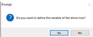 Ao concluir as configurações e escolher o CLP desejado, o sistema irá perguntar se você deseja adicionar as variáveis dele, vamos fazer isso agora, mas poderia ser feito posteriormente indo no campo variable, device ou mesmo pelo Project profile no centro da tela selecionando o dispositivo cadastrado.