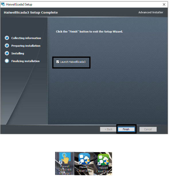 Haiwell Cloud SCADA Runtime: Este App serve para rodar a aplicação, você tem a opção de registrar e instalar apenas este software no cliente para que ele use a criação do desenvolvedor.