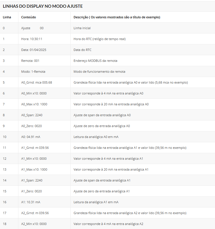 Remota: 0001 indica que o endereço MODBUS da remota é 1.
