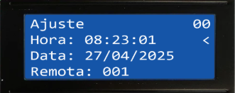 Hora: 08:23:01 < mostra a hora e do RTC e a seta no fim da linha indica que esta linha pode ser editada.