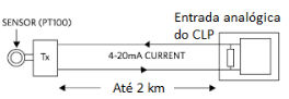 Um exemplo de sensor de temperatura que opera nessa faixa é o PT100, e o circuito que produz o sinal de 4 a 20 mA é o transdutor de grandezas que converte o sinal do PT100 em sinal analógico.