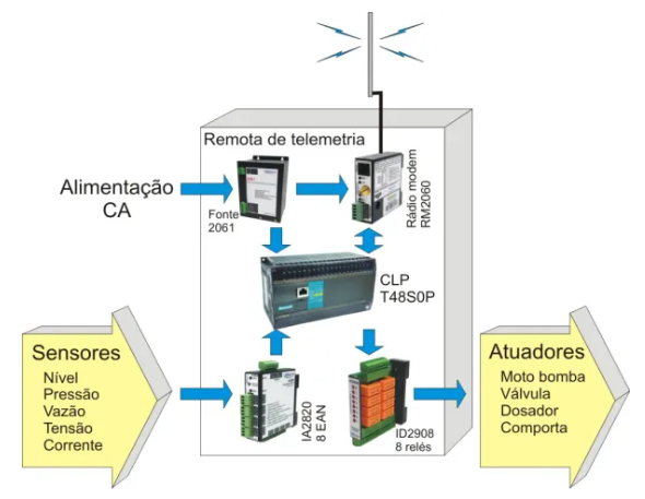 Não é possível falar de sistemas de automação no saneamento sem mencionar as tecnologias de comunicação com as estações, chamadas popularmente de telemetria. Podemos dizer que no saneamento os sistemas de automação tratam da automatização, monitoração e controle, em tempo real, de reservatórios e elevatórias de água e esgoto, ETAs e ETEs via rádio.
