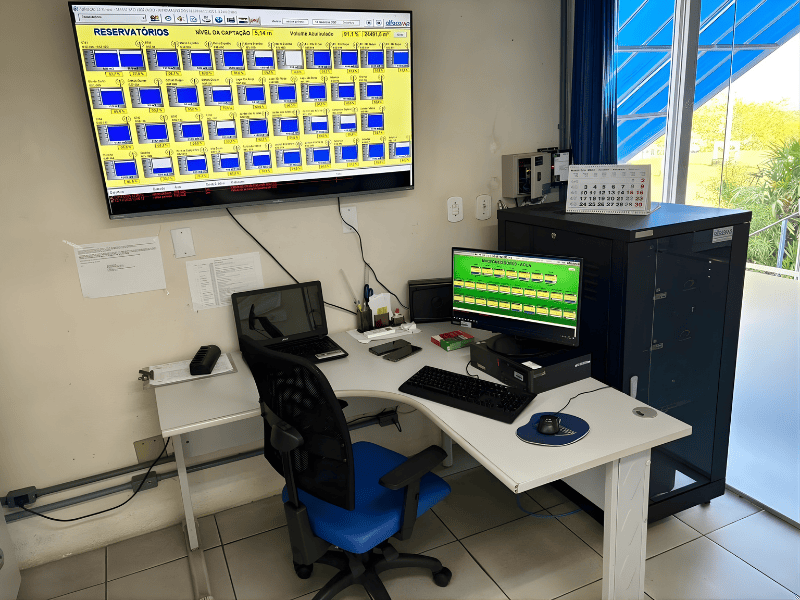 Reconhecendo essa necessidade, em 2023 o SEMAE decidiu renovar completamente seu Centro de Controle e Operação (CCO), incorporando tecnologias de IoT, telemetria e supervisão industrial. A Alfacomp assumiu o papel central de implementação, personalização e integração do novo sistema.