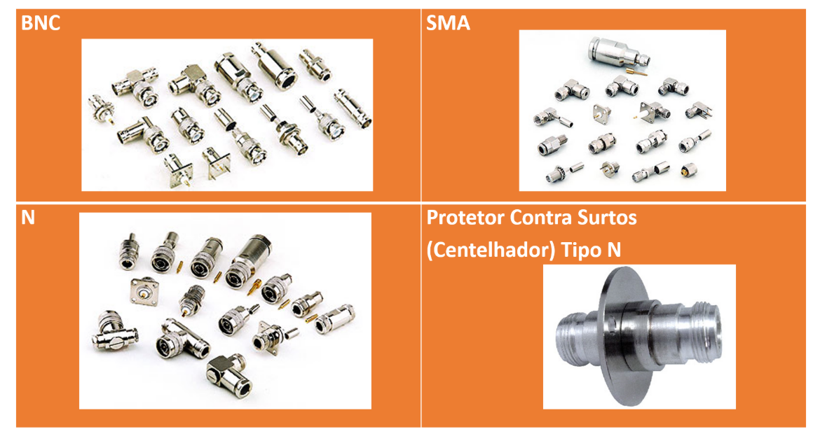 A tabela a seguir apresenta alguns dos conectores mais utilizados nas aplicações de Telemetria.