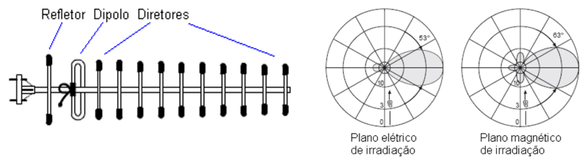 Normalmente conhecida apenas por antena Yagi, foi concebida em 1926 por Shintaro Uda da Universidade Tohoku do Japão com a colaboração de Hidetsugu Yagi, que teve seu nome associado à antena quando publicou o primeiro artigo em inglês descrevendo a mesma. Conceitualmente, a antena Yagi é composta por um Refletor, um dipolo simples ou dobrado e um ou mais diretores. A antena da figura é apresentada na posição de polarização vertical que é normalmente utilizada em telemetria e apresenta ganhos que vão de 3 até mais de 20 dBi.