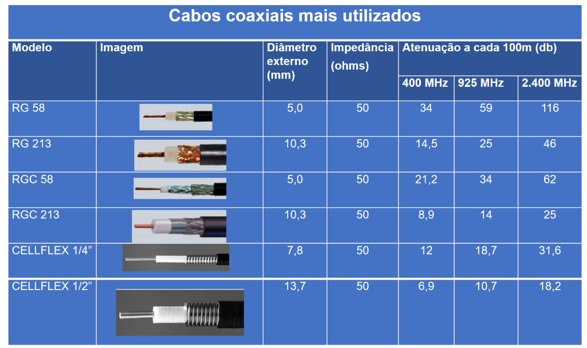 Os cabos coaxiais são as linhas de transmissão mais utilizadas em aplicações de telemetria.