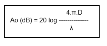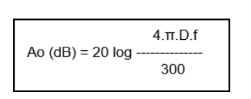 Uma onda eletromagnética propagando-se no espaço sofre uma atenuação contínua. A intensidade é inversamente proporcional ao quadrado da distância, ou seja, quando a distância dobra, o sinal diminui para um quarto do valor. A atenuação no espaço livre pode ser calculada pela fórmula abaixo.