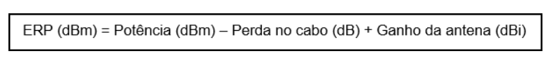 A Potência Efetivamente Irradiada (ERP) por uma estação transmissora pode ser calculada pela fórmula abaixo.