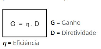 O ganho pode ser entendido como o resultado da diretividade menos as perdas. Matematicamente, é o resultado do produto da eficiência pela diretividade.