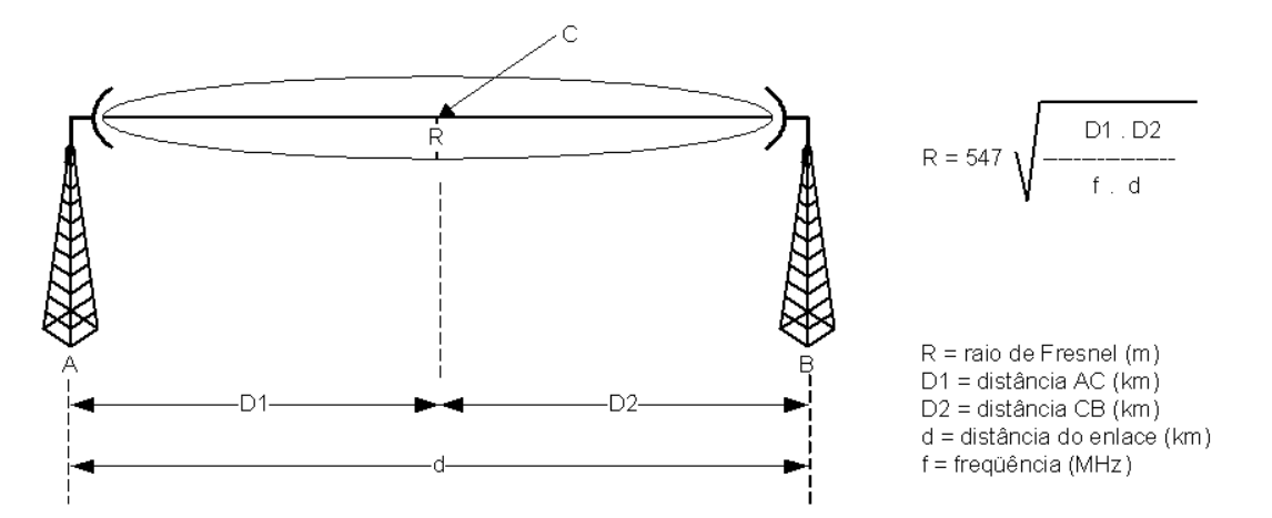 O cálculo do raio de Fresnel é apresentado abaixo.
