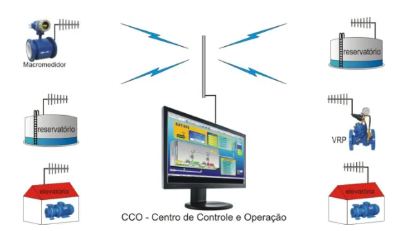 Dotado de computadores e monitores, o CCO permite que a equipe de operação supervisione e controle o funcionamento de todo o sistema de abastecimento de água do município. Do centro de operações é possível comandar de forma automática e manual o funcionamento de elevatórias, reservatórios, boosters, válvulas, comportas, macro medidores de vazão e qualquer outro dispositivo eletromecânico. Toda a comunicação se dá via rádio. A foto abaixo apresenta um exemplo de CCO.