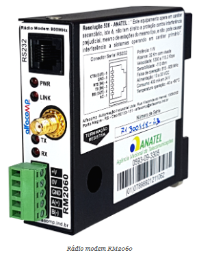 O transceptor RM2060 consiste em uma solução de alto desempenho e baixo custo para comunicação wireless utilizando tecnologia Spread Spectrum na faixa dos 900 MHz podendo substituir milhares de metros de cabos de comunicação em ambientes industriais ruidosos. Utilizando comprovada tecnologia FHSS, que dispensa licença de operação junto a Anatel, o transceptor RM2060 estabelece comunicação entre computadores, CLPs e instrumentos diversos que possuem porta serial em padrão RS232 ou RS485 com taxas de 1200 a 115.200 bps. Para aumentar a segurança e integridade das comunicações, os transceptores RM2060 permitem a encriptação dos dados. Alcance de até 32 km com visada.