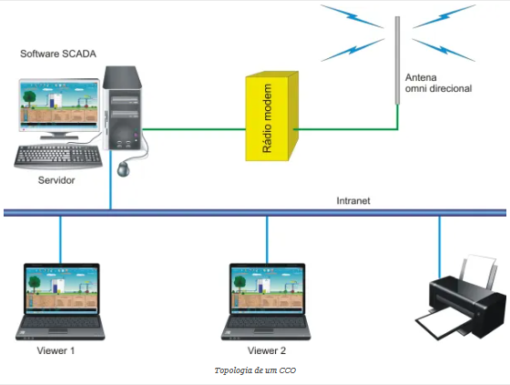 O software central de controle de um CCO é o software supervisório, também chamado SCADA (Supervisory Control and Data Acquisition). Este software permite visualizar na forma de telas gráficas o processo que está sendo supervisionado e controlado, no caso, o sistema de distribuição de água tratada do município. O software supervisório, normalmente está organizado em módulos e licenças, sendo que os principais são: