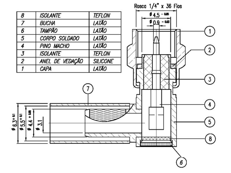 | Perda de inserção | máx. 0,1 √f(GHz) dB |