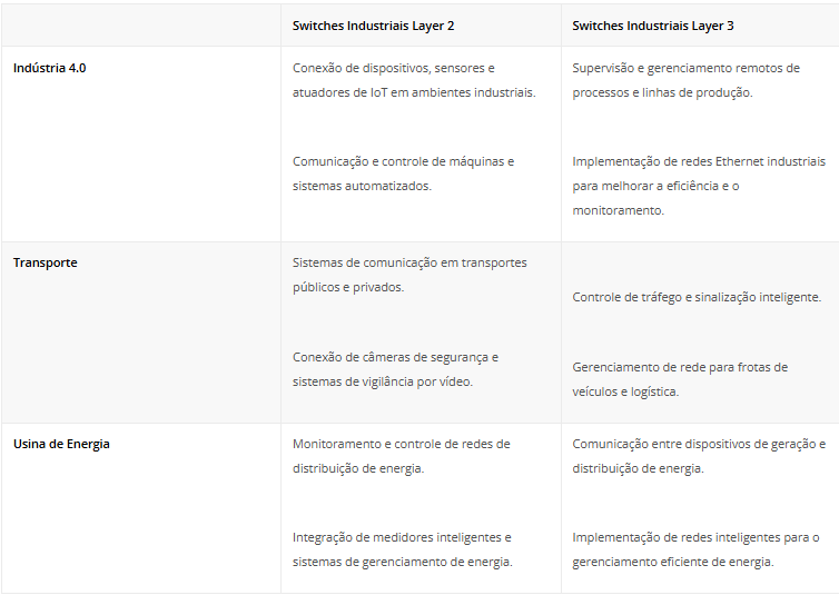 Protocolo de camada (Layer) do switch industrial
