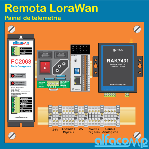 A figura a seguir mostra um exemplo de unidade remota de telemetria utilizada na automação da estação elevatória e reservatórios.