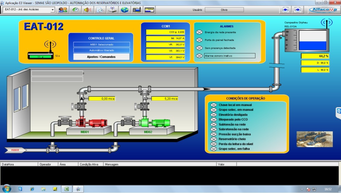 Lógica de funcionamento de reservatórios e elevatórias de água tratada