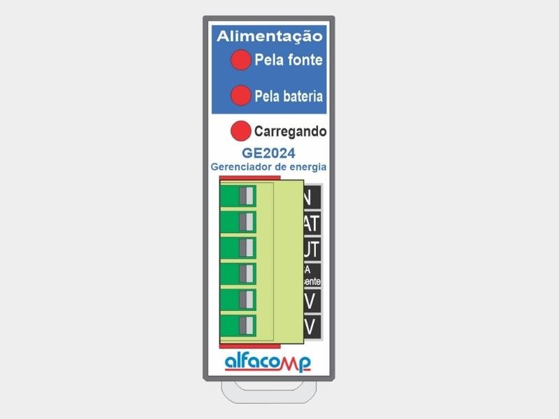 O Gerenciador de energia GE2024 funciona como carregador de bateria e transforma uma fonte comum de 24 VCC em um Nobreak CC de 100W. O módulo possui um circuito chaveado que alimenta a bateria de 24V (podem ser duas baterias de 12V ligadas