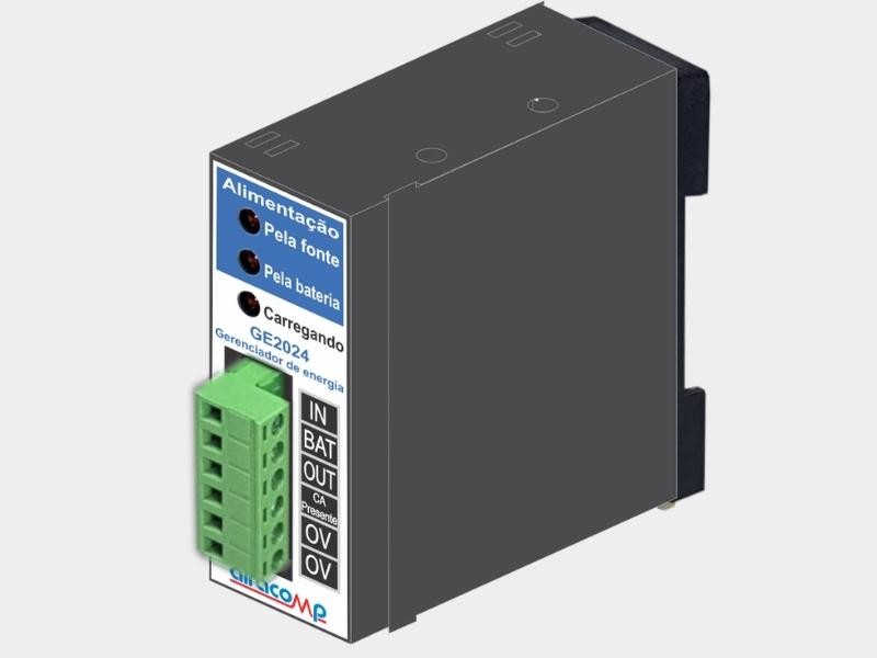 O Gerenciador de energia GE2024 funciona como carregador de bateria e transforma uma fonte comum de 24 VCC em um Nobreak CC de 100W.