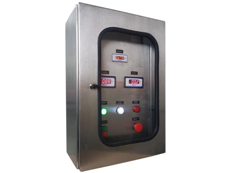 | Acionamento | Botão LIGA no painel e bornes para conexão de botão remoto. Botão EMERGÊNCIA no painel e bornes para conexão de botão remoto |