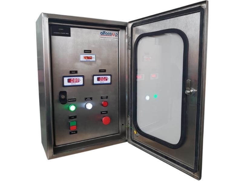 Um CLP com IHM controlam o sequenciamento do funcionamento do equipamento.