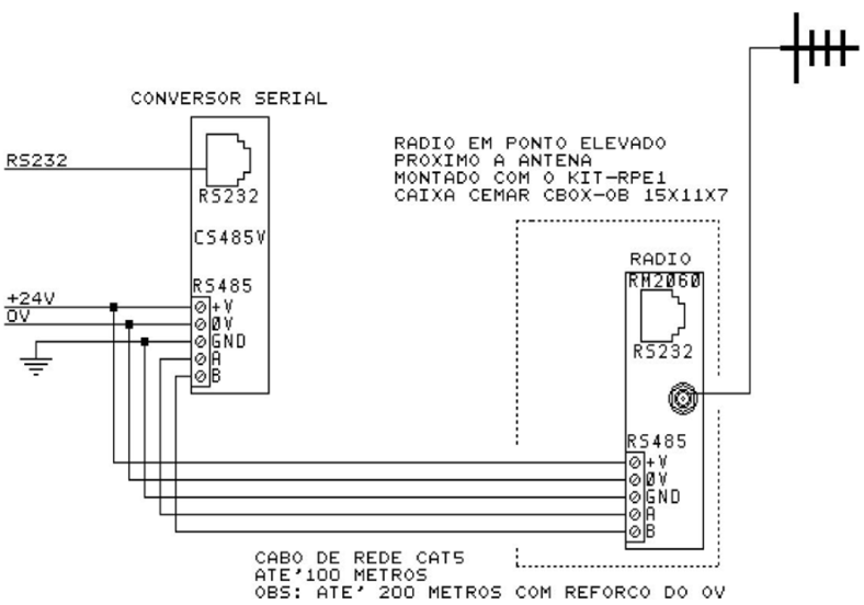 O KIT RPE foi concebido para permitir a instalação de um rádio modem próximo à antena. Com esta solução, as perdas no cabo de RF são minimizadas e podemos instalar o rádio afastado do CLP e interligado por cabo de rede CAT5. A alimentação do rádio e a comunicação em RS485 são transportadas pelo cabo em distâncias de até 200 metros. O gabinete utilizado tem IP67 e pode ficar ao tempo.