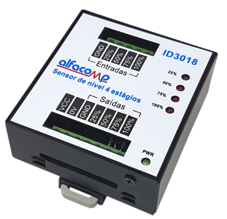 O sensor de nível ID3018 permite ler o nível de reservatórios utilizando 5 eletrodos que ficam mergulhados na água.