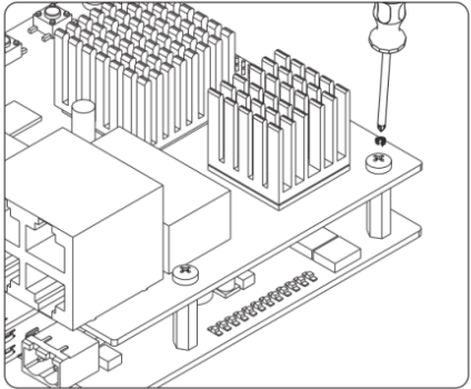 2. Com cuidado, coloque o produto na coluna de montagem e alinhe os orifícios de fixação; em seguida, use a chave de fenda para parafusar os parafusos de fixação na coluna.