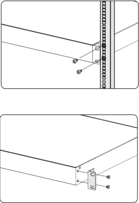 2. Monte o switch no rack usando os suportes de montagem e os parafusos fornecidos.