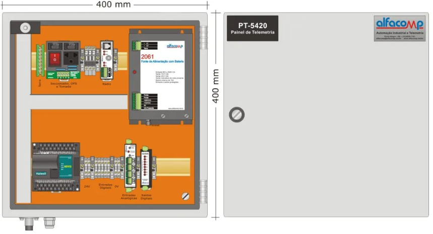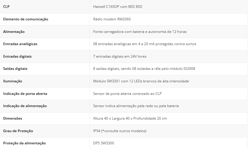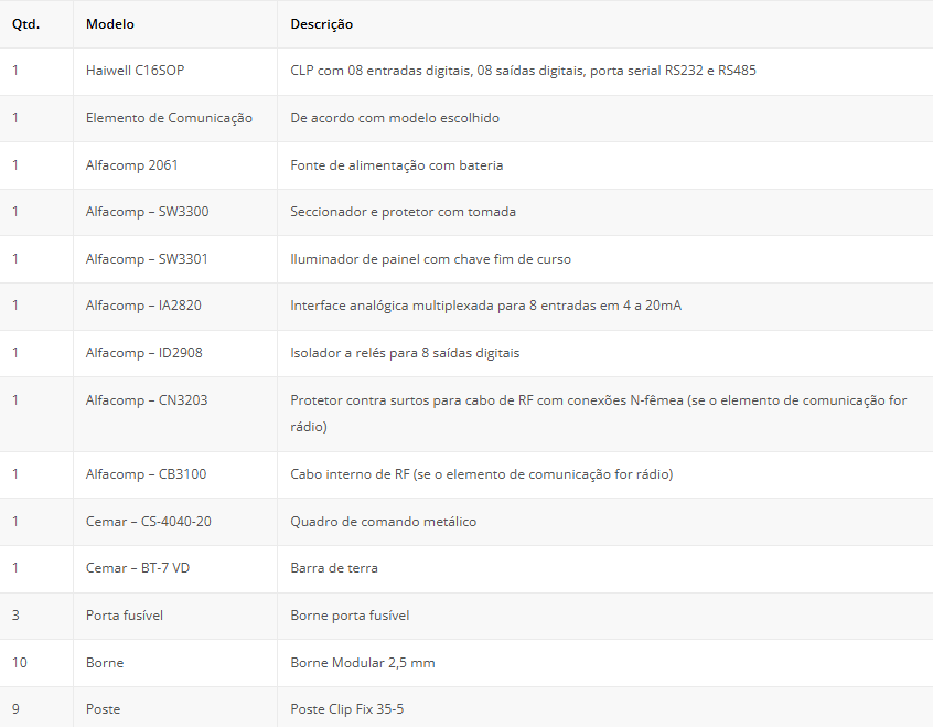 Baseado no CLP Haiwell modelo C16SOP, o painel apresenta alto índice de integração, modularidade, facilidade de manutenção e protocolo MODBUS RTU mestre e escravo, resultando em uma montagem de alto desempenho e baixo custo. O quadro está programado para controlar e monitorar: