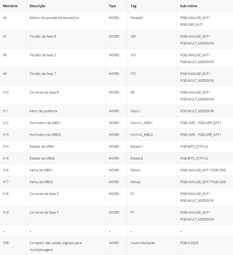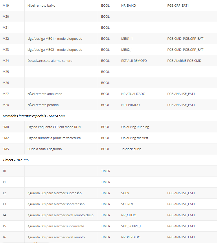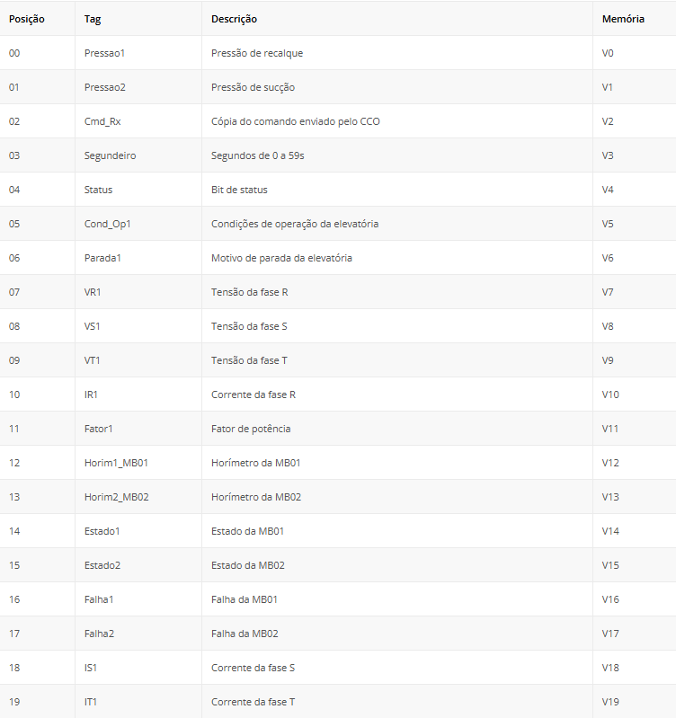 Desbloqueio – A elevatória é ativada fazendo a posição 0 da tabela de setpoints igual a zero. Isto permite que o CLP opere automaticamente.