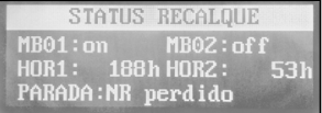 Apresenta status da motobombas, motivo de parada do grupo e horímetros.