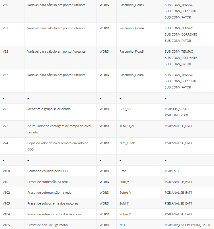 O mapeamento de memória utilizado para leitura e escrita do mestre de comunicação Modbus RTU chamamos de ICOM. As tabela abaixo agrupam as variáveis de leitura e escrita da ICOM.