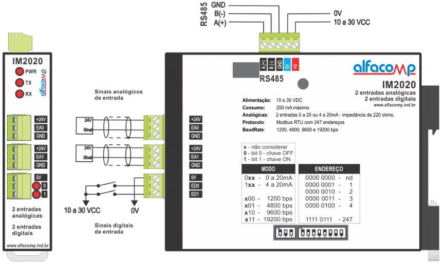 As Interfaces Modbus Alfacomp são uma família de módulos de entradas e saídas analógicas e digitais que comunicam pelo protocolo Modbus.
