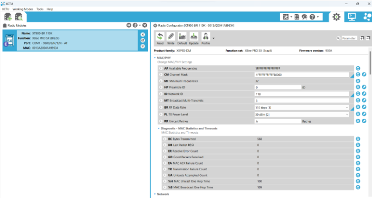 - Clique no rádio selecionado para que o XCTU leia sua configuração;