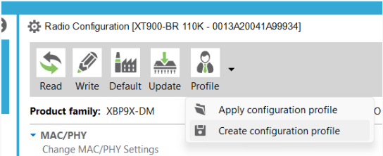 - Em seguida, configure o rádio com a o Profile criado, utilizando o Apply configuration profile.