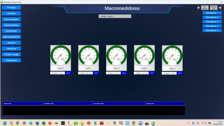Esta tela mostra os valores de vazão e volume acumulado dos macromedidores do sistema.