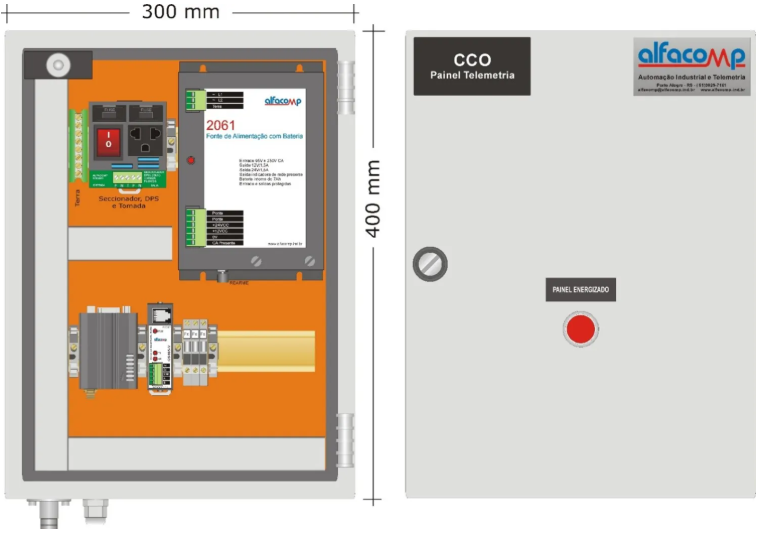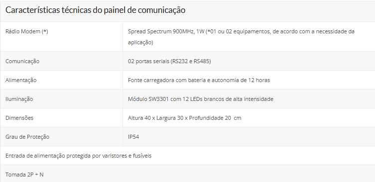O painel de comunicação abriga fonte e rádio modem e tem sua principal aplicação em CCOs e Estações Repetidoras.