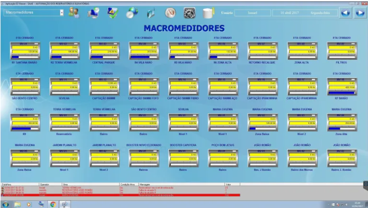 Monitorar em tempo real o funcionamento de estações elevatórias, reservatórios, medidores de vazão e demais dispositivos elétricos e hidráulicos do sistema;