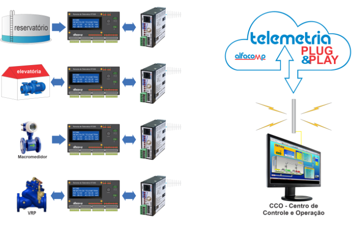 A figura abaixo apresenta um exemplo de aplicação da Telemetria Plug & Play no saneamento.