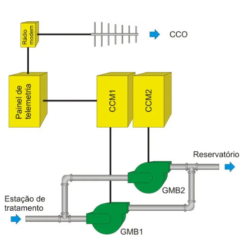 Esse artigo apresenta a lógica de intertravamento entre reservatórios e suas respectivas estações elevatórias, sensores hidráulicos e elétricos, e parâmetros de ajuste de funcionamento.