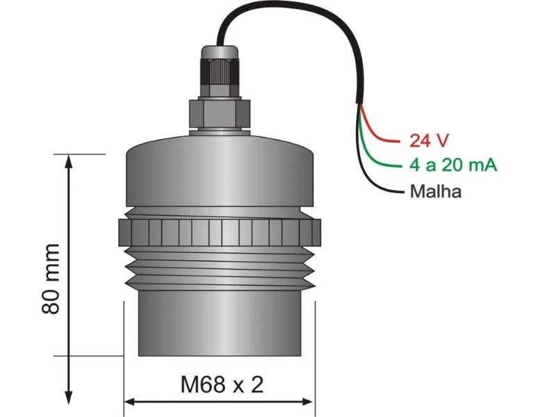 O transmissor ultrassônico é instalado no topo do reservatório, acima do nível máximo do líquido. Os pulsos ultrassônicos são emitidos pelo transmissor e refletidos pela superfície do líquido.
