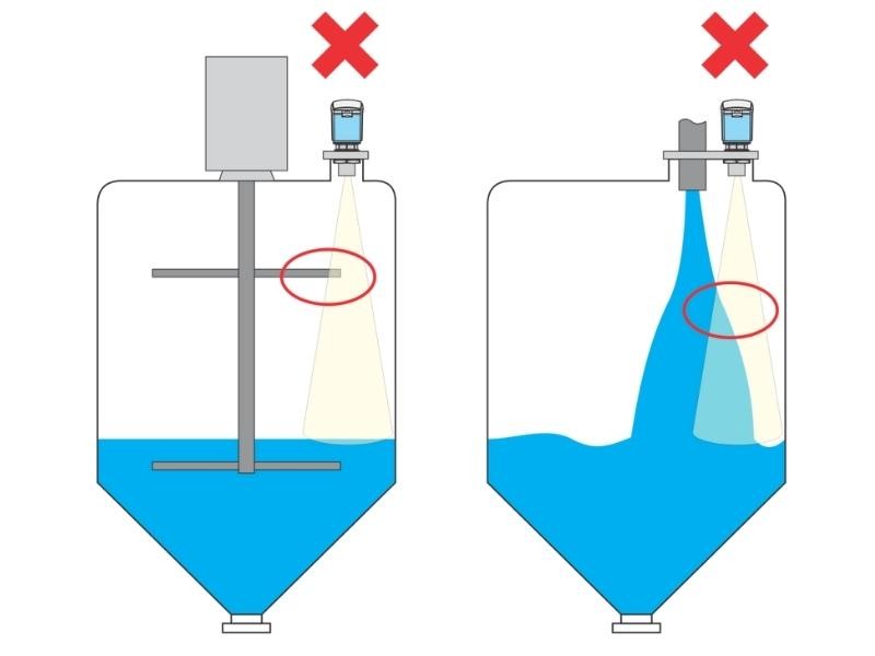 - Alguns ecos de interferência desenvolvidos por bordas e superfícies refletoras, causam erro na medição. Isso pode ser resolvido pelo software do transmissor, normalmente denominado supressão de eco de interferência.